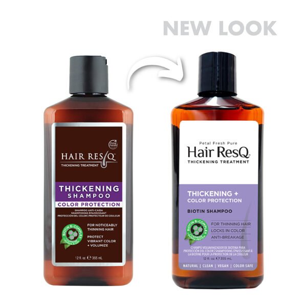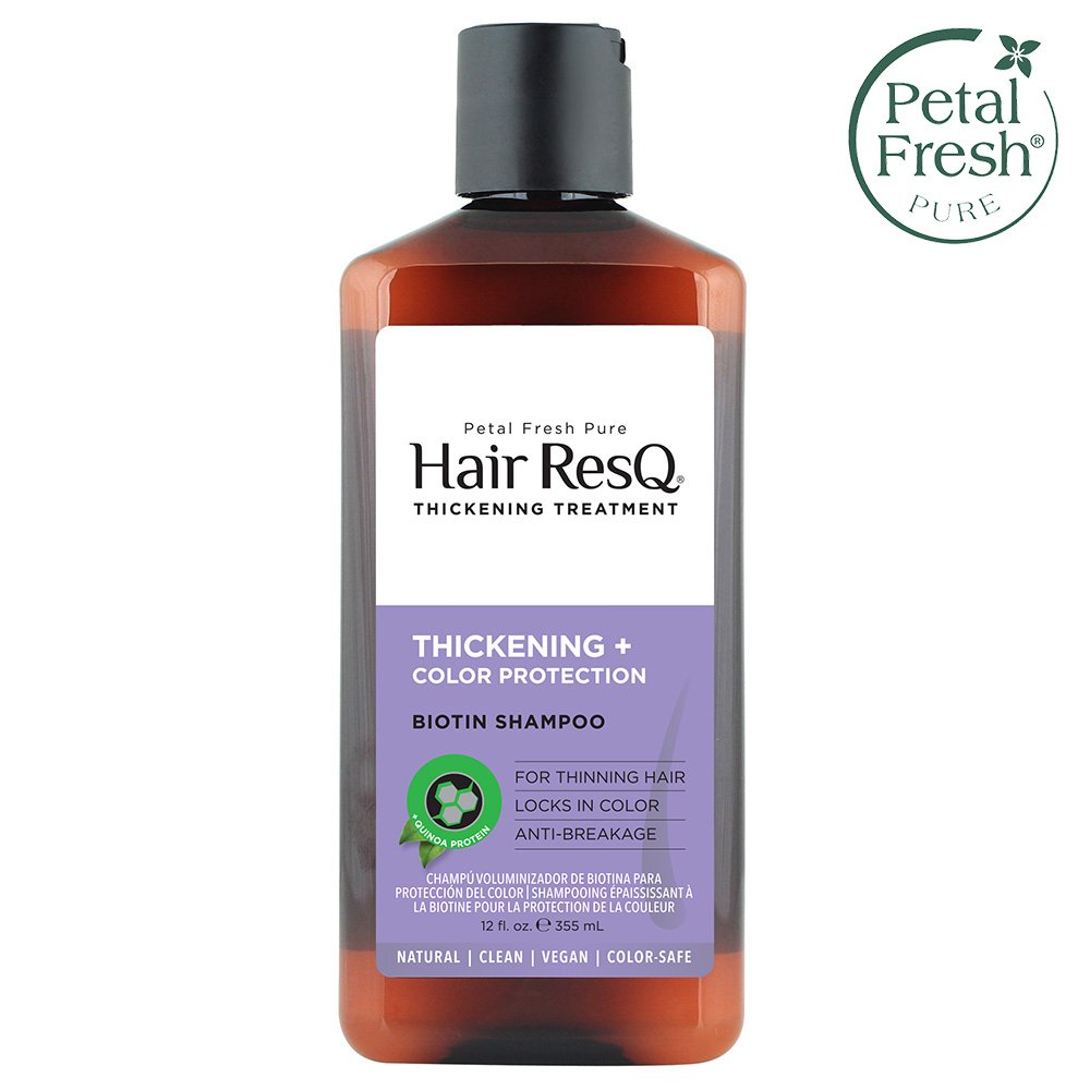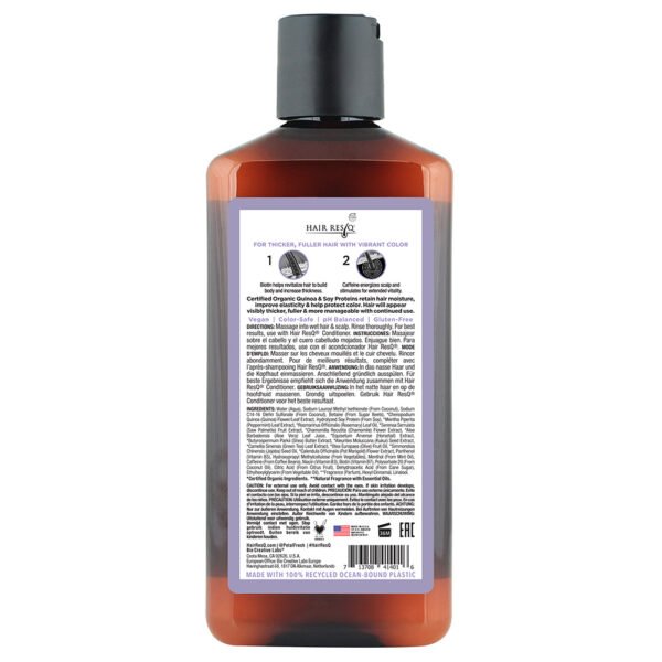 Hair ResQ Thickening Treatment for thinning hair is a natural shampoo that is formulated with Biotin to strengthen and revitalize hair plus Caffeine to energize and invigorate hair follicles to encourage healthy hair growth. Certified Organic Quinoa and Soy Proteins work together in our Color Protection formula to help retain hair moisture and improve elasticity. We believe what’s not in our products is just as important as what is, and that’s why we are paraben-free, sulfate-free, vegan, and have banned over 1600 harmful ingredients. All of our packaging is produced using 100% recycled Ocean Bound Plastic.