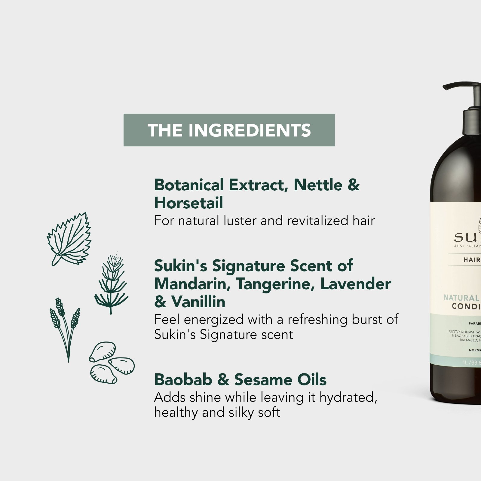 Free from sulphates, silicones and the harsh chemicals that can dry out and strip your hair and scalp, our gentle and nourishing Conditioner is formulated to achieve naturally balanced, healthy hair, naturally! Botanical extracts of Burdock, Nettle and Horsetail promote natural lustre and revitalised hair. A blend of Baobab and Sesame Oils add shine to the hair while leaving it hydrated, healthy and silky soft. Feel energised with a burst of Sukin’s Signature Scent of Mandarin, Tangerine, Lavender and Vanillin!