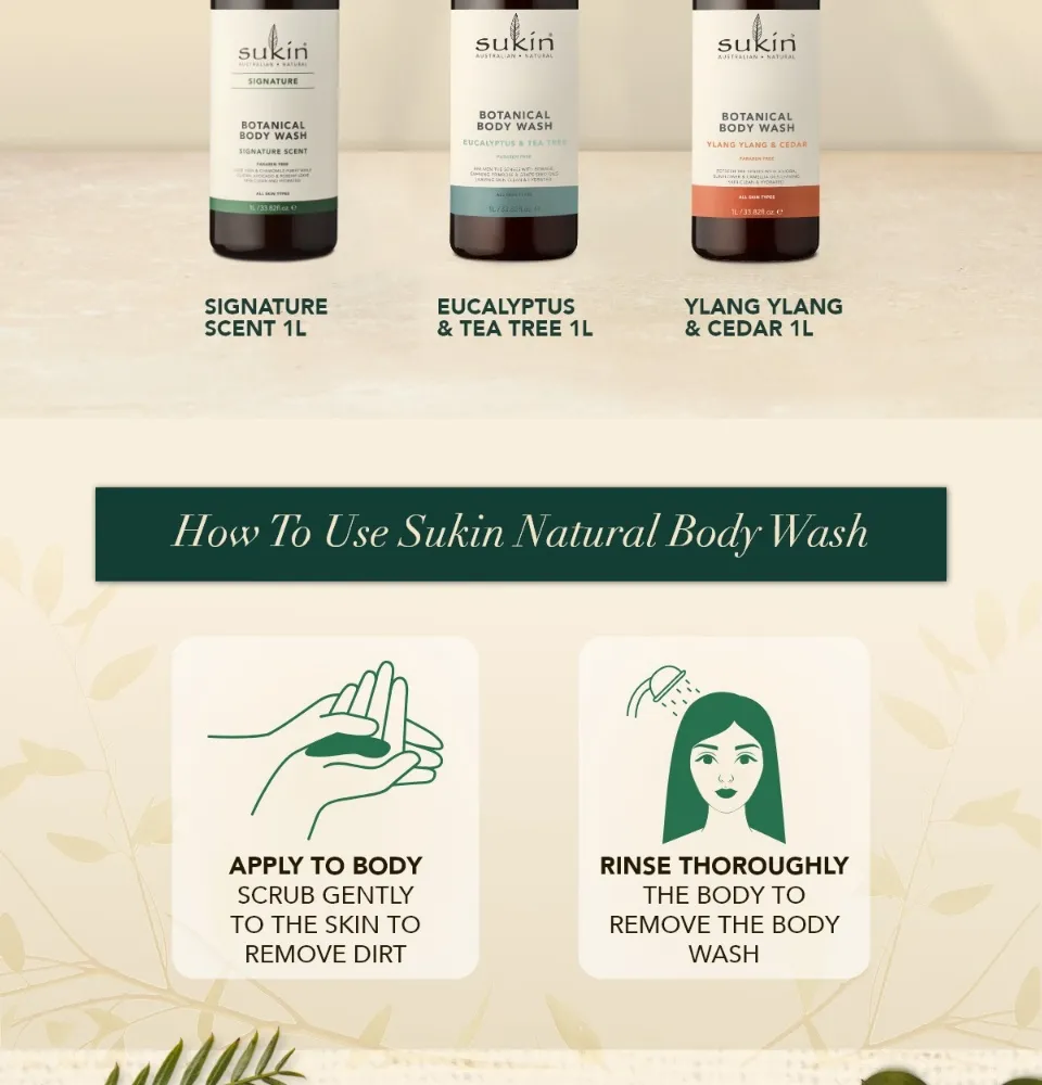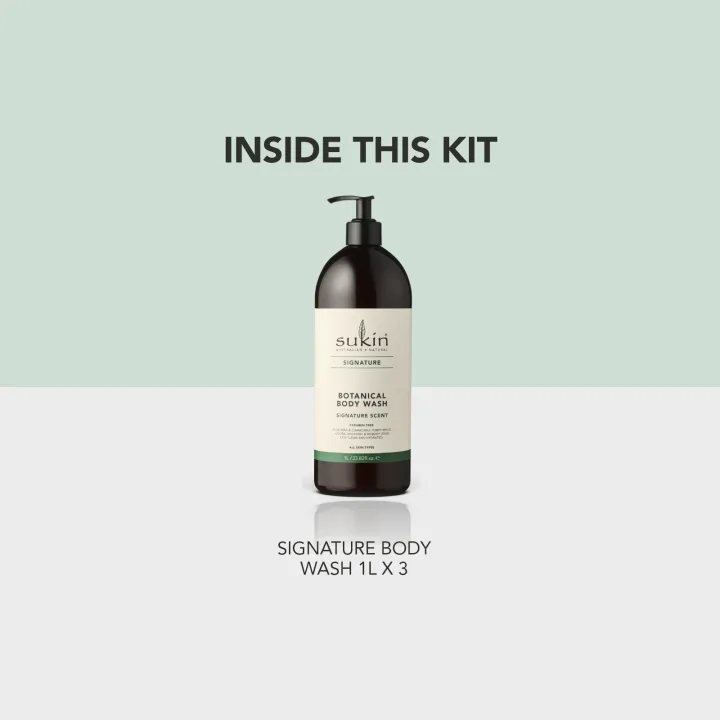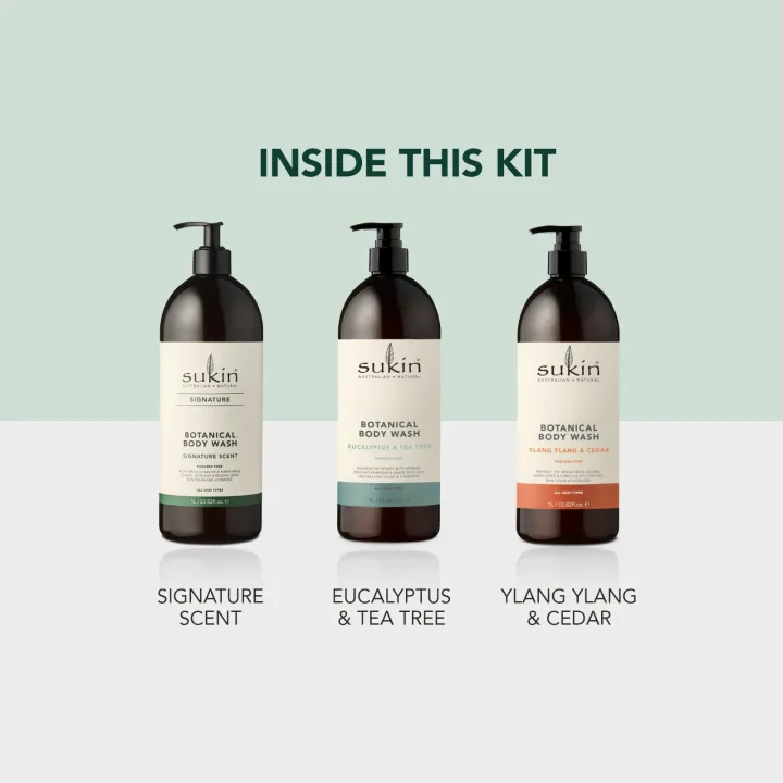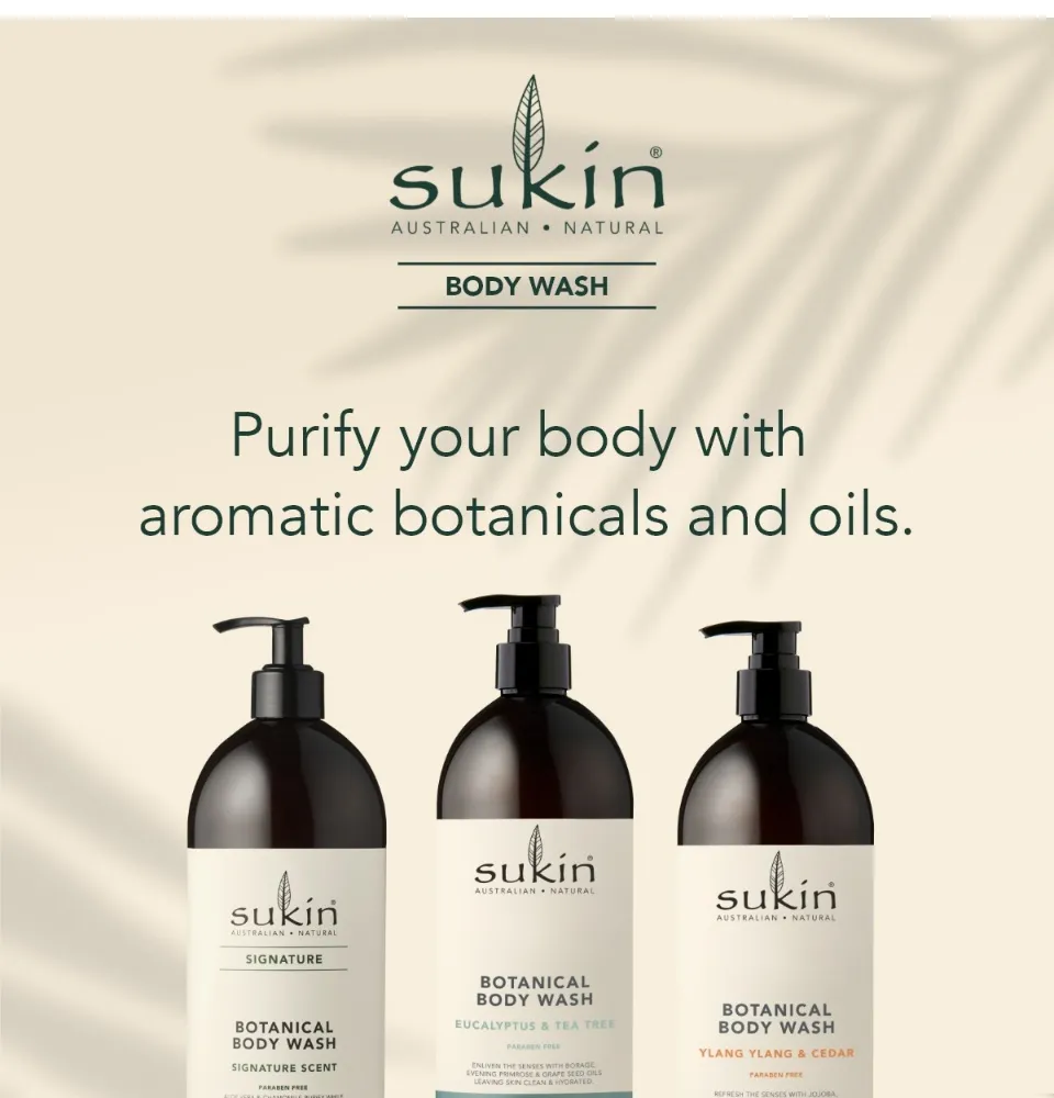 [VALUE SET OF 3] Sukin Botanical Body Wash 1L (Signature / Eucalyptus & Tea Tree / Ylang Ylang & Cedar)